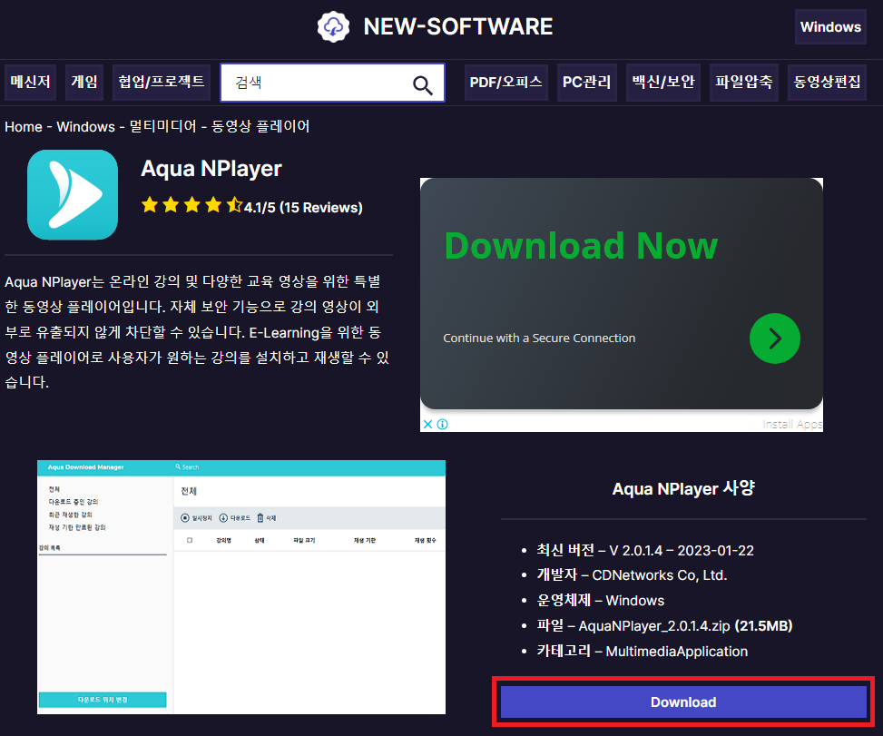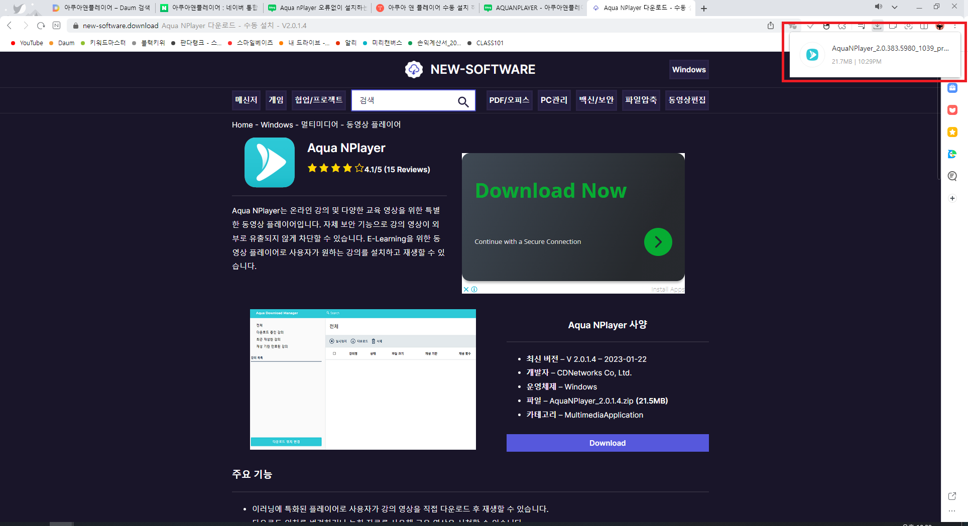 구글 크롬에서 아쿠아앤플레이어를 검색 후 다운을 받아주셔야합니다.