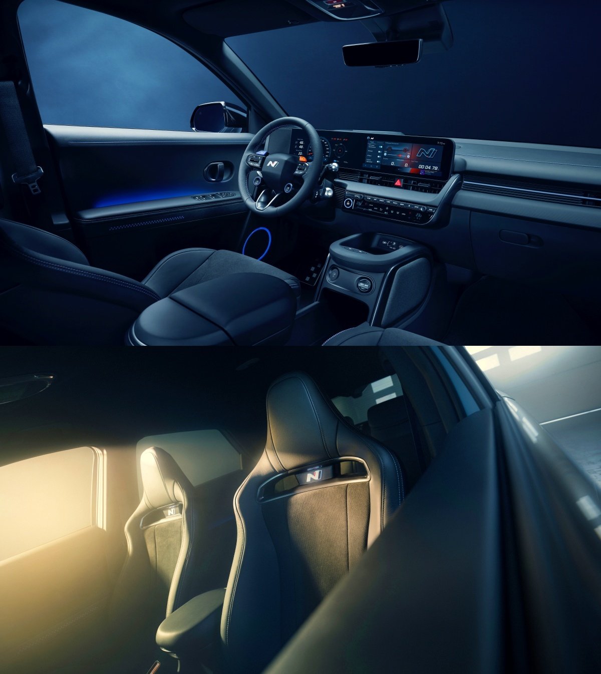 실내는 스티어링 휠, 시트, 도어스커프, 메탈 페달 등 N 브랜드 디자인 사양을 적용해 N 패밀리 룩을 실현했습니다. 특히 스티어링 휠은 주행 성능을 극대화할 수록 새롭게 디자인했습니다. 운전자가 원하는 대로 주행 모드를 각각 설정할 수 있는 두개의 N 버튼도 마련했습니다. 정강이와 무릎을 지지하는 패드와 슬라이딩 암레스트를 센터 콘솔에 적용한 것도 트랙 주행을 고려한 보강입니다. 이 밖에도 N 라이트 버킷 시트, 신발과 닿는 면적을 극대화해 극한 주행 상황에서 발 미끄러짐을 최소화하는 페달 등 고성능 모델에 맞는 배려가 돋보입니다.
